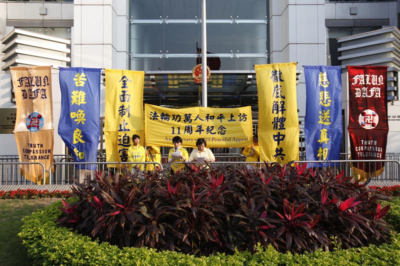香港多位知名人士到场声援。前立法局议员冯智活牧师说,法轮功学员十一年来的努力已取得一定成果,“愿正义得到伸张,让法轮功的朋友自由修炼,自由去散播真善忍的美好、美好的生命的质素。”