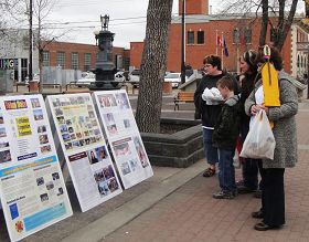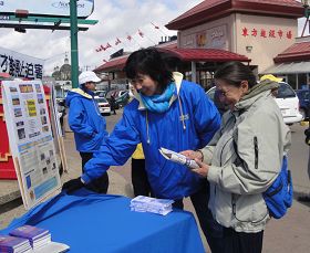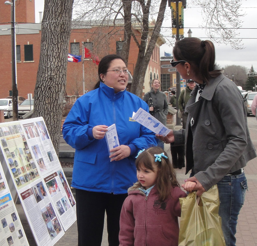 有些路人仔细听学员讲述真相,对中共的邪恶、残暴感到震惊,希望迫害早日停止,询问能帮助做什么;有些要了更多的真相资料,要送给亲朋好友。一位西人女士,了解完真相后,流着泪激动地和学员拥抱,一再感谢学员把真相告诉她。