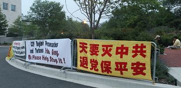 中共驻美国使馆对面的铁栅栏上悬挂着写有“法轮大法好”、“世界需要真善忍”、“全球公审江泽民”等中英文横幅。上百名法轮功学员平和的炼功,他们肤色不同,来自不同的行业,有老人,也有孩子,有的曾参加过一九九九年在北京的四•二五和平上访,也有刚刚走入法轮大法修炼的新学员。他们讲述了修炼大法的经历。