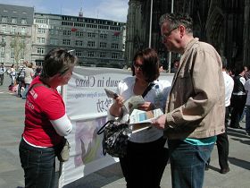 很多人,有德国人,也有来科隆大教堂游览的外国人,在了解到迫害真相后签名支持法轮功学员的反迫害活动。