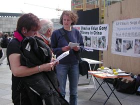 人们驻足了解发生在中国的迫害详情 |