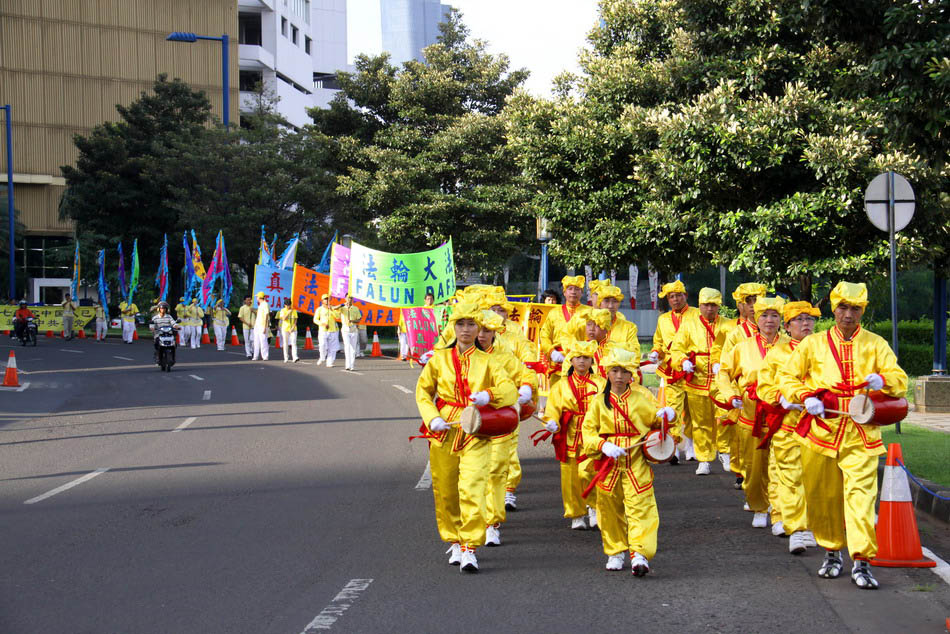 ![]() 法轮功学员进行了展示法轮功美好的游行 |