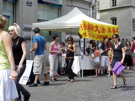 巴黎是世界旅游之都,每年来自世界各地的游客有八千二百多万人次,其中有六十多万中国游客。法轮功学员为了能让来法国的中国人听闻到法轮功的真相,他们在中国人喜欢去的景点、高档商品购物中心、团餐餐厅、中国城、美丽城、火车站等处设点讲真相。在这些地方,长期以来,每天都有法轮功学员坚持在那里派发讲述法轮功受迫害真相的资料等,为了能赶上中国游客中午到餐厅吃饭时能见到他们,多年来, 坚持在那里的法轮功学员都没吃过正式午饭,他们在中国人出入的地方摆放了展板,向经过的中国人揭露中共迫害法轮功的真相,并劝他们退出中共的相关组织,向他们派发诸如《·九·评*共产党》等资料。