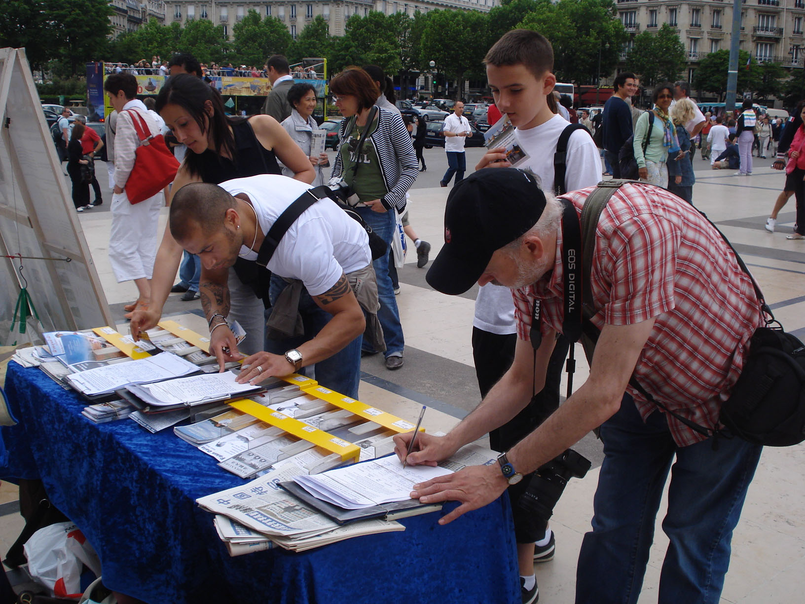 十一年当中,埃菲尔铁塔下的人权广场,就象一个国际大舞台一样,法轮大法的美好和在中国所受到的非法的、灭绝人性的迫害在这里被昭告于天下。有成千上万的人听闻到了真相,并签名声援反迫害。