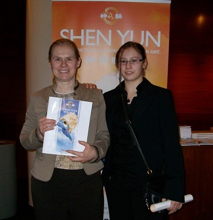 神韵国际艺术团在加拿大埃德蒙顿银禧剧院的首场演出让学习两年唱歌、六年舞蹈的欣子-考斯玛(Csenge Kozma)激动不已,她说:“神韵艺术团表演的舞蹈才是我想学的,我要去飞天艺术学院学习中国古典舞。”