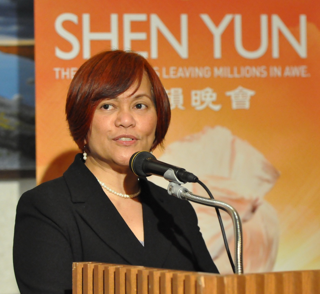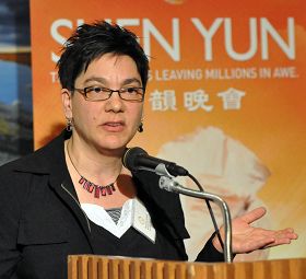 “从今晚的演出中我看到传统的中国文化,看到古老的文明复活。神韵带来了中国的历史,带来了中国的视觉形象。”她说,“从晚会的描摹中,我能想象出传统中国是怎样的国家,也看到当今中国不幸的人权现状。”
