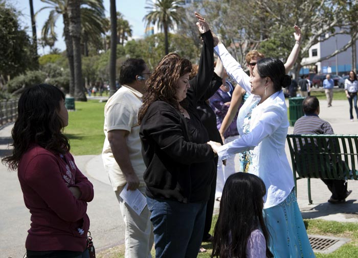 一位来美国游玩的印度夫妇看到法轮功学员演示功法时,妻子德瓦卡女士(Darshana Dwarka)表示这是她第一次看到有这么多人炼法轮功。她认为法轮功学员为这里营造出一种非常祥和的气氛,是那么地平静、充满善意。