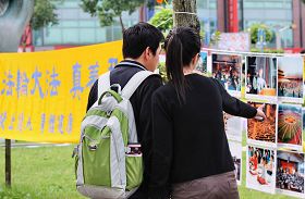 法轮大法的教功活动等都是公开、免费的。现场设有义务教功的摊位,有民众停下车来索取资料、有的主动前来问炼功点等。高先生说他寻找法轮功很久了,多年前一位教职朋友向他介绍过,他有法轮功的部份书籍、录像带,却迟迟未真正走进来,这次希望更进一步理解,也期盼李洪志师父能来台湾讲法。