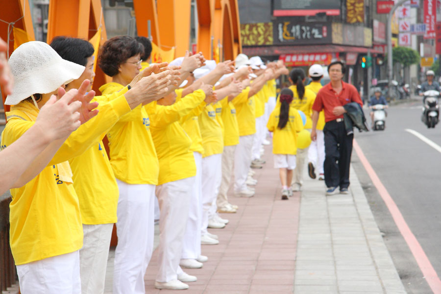 ![]() 法轮功学员在中坜市的几条主要道路展示功法 |
