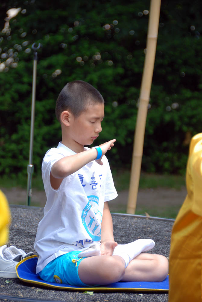 ![]() 九岁大法小弟子在费城动物园首届亚裔文化节上宁静地打坐 |