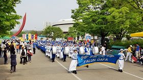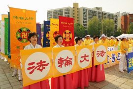 集会结束后,游行队伍围绕整个奥林匹克公园游行一周,向当日参加游园活动的一万多名民众展示法轮功五套功法,讲述法轮功真相。