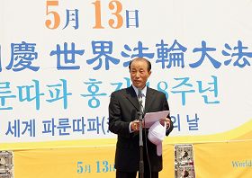 十几年来,法轮功学员坚忍、乐观、矢志不渝的精神引起了社会各界的关注和反思。韩国国会议员辛鹤用;亚洲哲学会会长、釜山大学教授崔佑源;前国会议员、“创造一流国家的国民力量”社团总裁金浩一等韩国各界政要、学者及社会名流发来贺辞,同庆法轮大法日的到来。韩国司法改革泛国民联盟常任代表郑求辰在集会现场发表演讲。