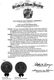 鉴此,新泽西州参众两院决定,本立法机构特此联合肯定并表彰世界法轮大法日,并表彰新泽西州法轮大法修炼者为这一上乘修炼功法所尽的义务和奉献。同时决定,本决议正式副本由参众两院议长签署,两院秘书为此作证。