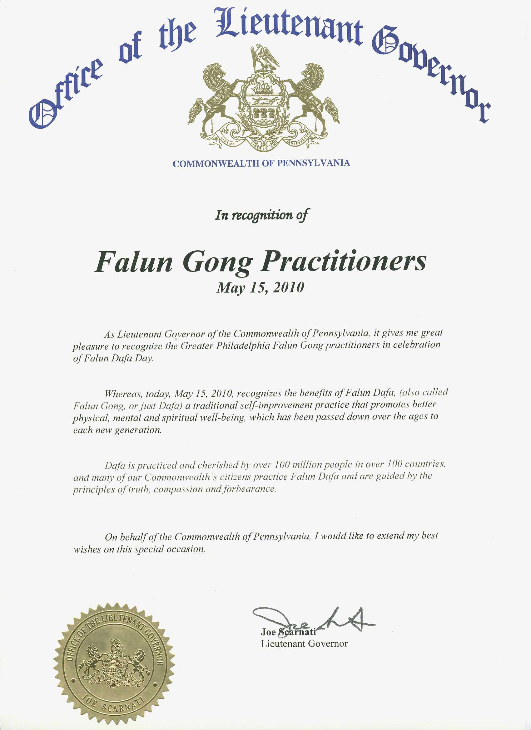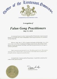 在庆祝法轮大法日之际,我作为宾夕法尼亚州的副州长,怀着极大的荣幸赞赏大费城的法轮功学员。