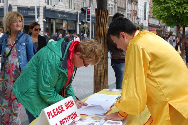 【明慧网二零一零年五月十四日】二零一零年五月十三日是伟大师尊李洪志先生的诞辰,也是世界法轮大法日。爱尔兰全体大法弟子怀着感恩的心情,来到都柏林市中心著名的邮政总局前,与民众一起欢庆这个伟大的节日。