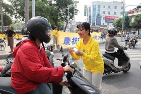 ![]() 台湾屏东法轮功学员在中山公园讲真相之一幕 |