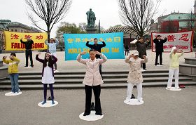 ![]() 人们现场学炼法轮功 |