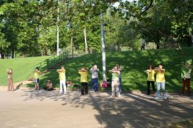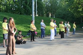 【明慧网二零一零年五月十五日】2010年5月13日那天,俄罗斯学员在中共驻俄罗斯大使馆前集体炼功、