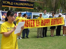 来自伊朗的萨哈在亚利桑那州立大学读研究生,今天也参加庆祝活动,她说自己已经修炼法轮功八年了,并介绍说波斯文的《转法轮》已在伊朗出版发行,她自己平时学大法时,就是读波斯文《转法轮》。