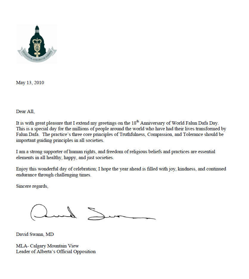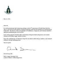 ![]() 大卫.斯旺博士祝贺法轮大法日的贺信 |