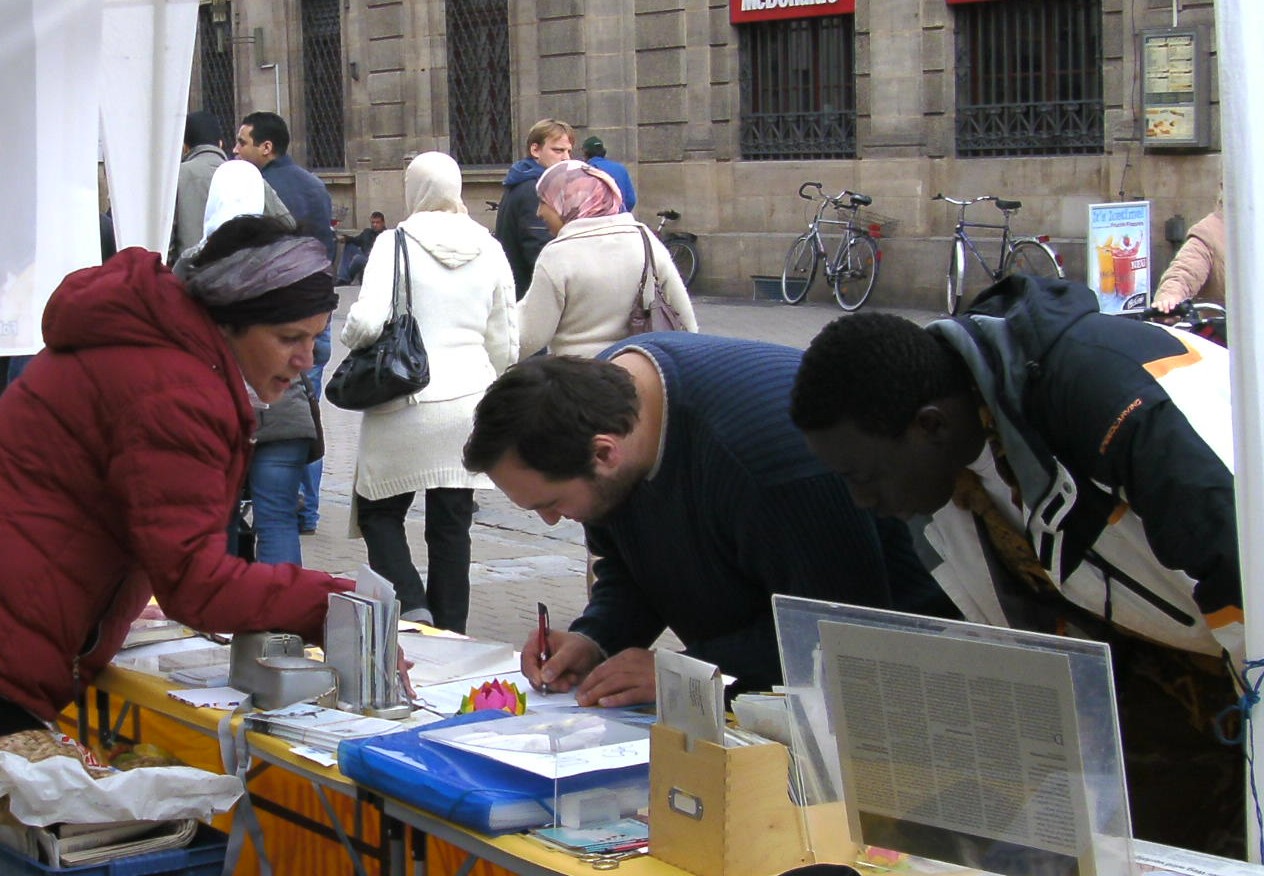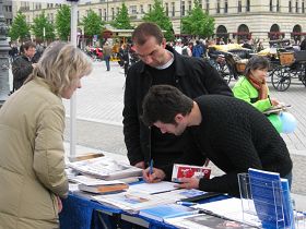 ![]() 德国大学城埃尔朗根的市民签名反对中共活体摘取法轮功学员的器官 |