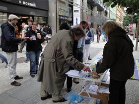在捷克,年岁大的人都经历过共产党的残酷统治,所以当他们拿到《·九·评*共产党》时深有感触,痛恨中共对法轮功的迫害。