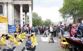 ![]() 英国法轮功学员在伦敦圣马丁广场集体炼功和讲真相 |