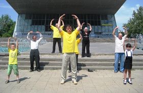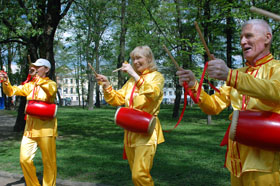![]() 法轮功学员们在克拉斯诺达尔市的公园中演示功法 |