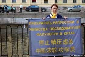 ![]() 法轮功学员在圣彼得堡中领馆前,抗议中共迫害 |