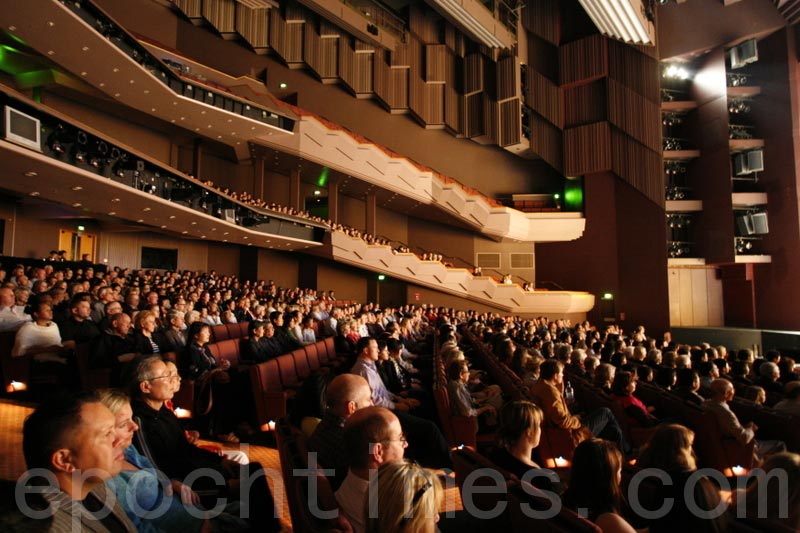 ![]() 观众们在在新西兰奥克兰ASB剧院凝神观赏神韵晚会 |