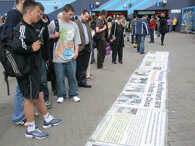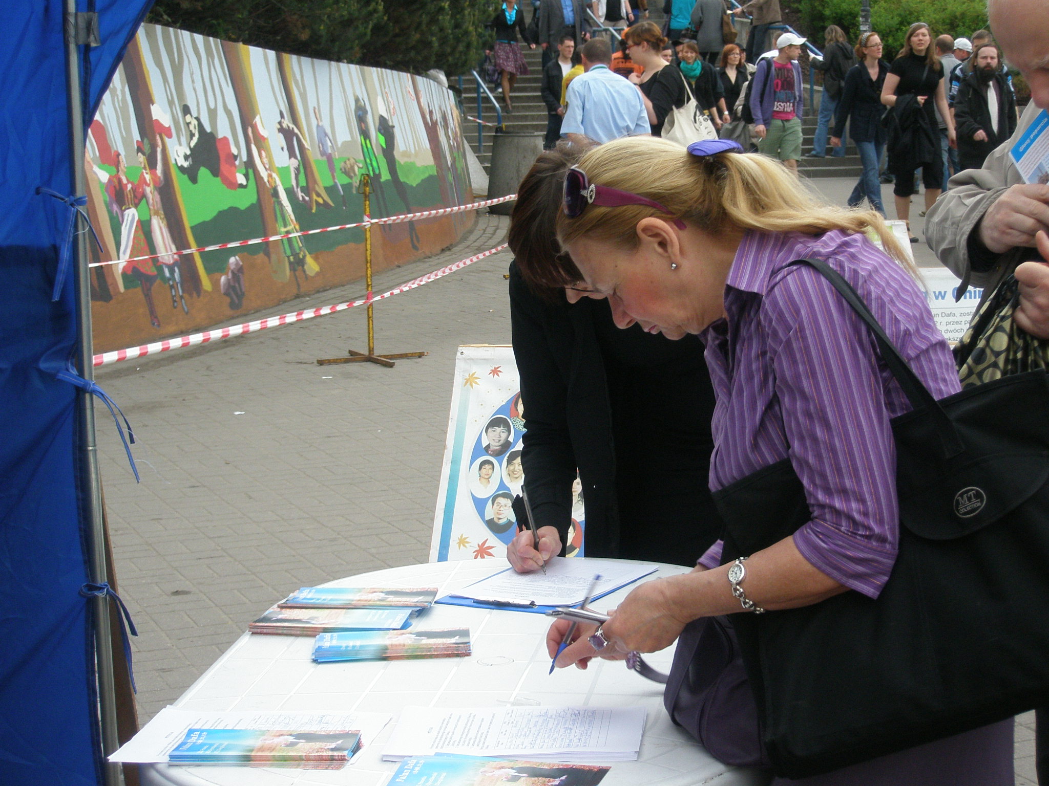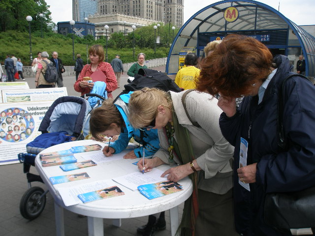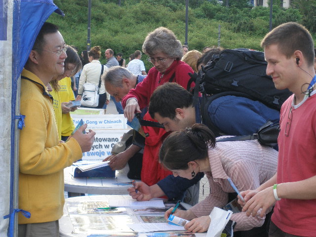 很多波兰人了解真相后,无不为中共的残暴而愤慨,相当多的人不敢相信现在世界上竟然还有这种邪恶存在。他们纷纷取阅法轮功真相传单和波兰语《·九·评*共产党》,在制止中共迫害法轮功的征签表上签字留名,很多人紧紧握住学员的双手说:祝你们成功,你们一定能成功!