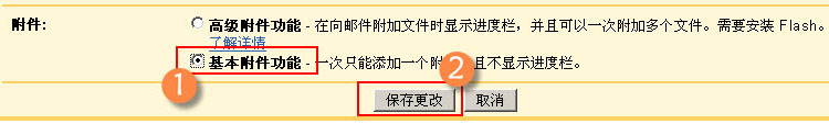 到设置网页底部,选择“基本附件功能”,之后点“保存更改”