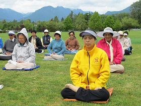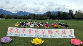 【明慧网二零一零年五月二十三日】加拿大本那比市与温哥华相邻,是一座秀丽的城市。该市市长宣布每年五月为法轮大法月。二零一零年五月二十二日,法轮功学员在本那比市的confederation 公园集体炼功,并向人们介绍这个以“真、善、忍”为原则的修炼方法,吸引了不少过往民众。