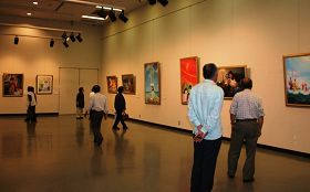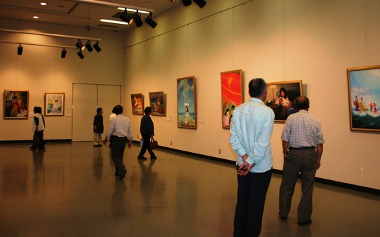 ![]() 上田市民们在观赏“真善忍国际美术展” |