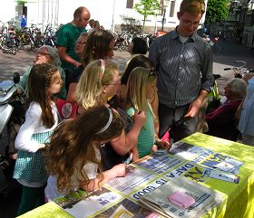 ![]() 法轮功学员在荷兰阿默斯福特向人们介绍法轮功 |