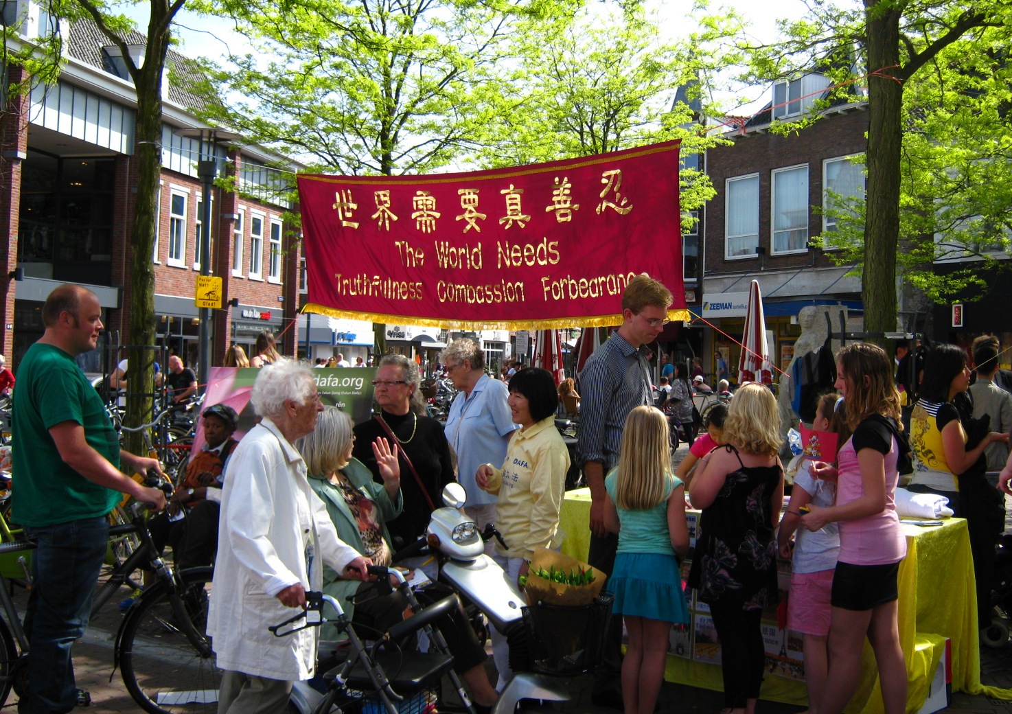 法轮功最早在中国传出,现在已传遍世界一百多个国家和地区,在荷兰也有很多修炼者。为了让更多人能够受益,法轮功学员利用自己的业余时间,举办弘法活动,并义务教功。