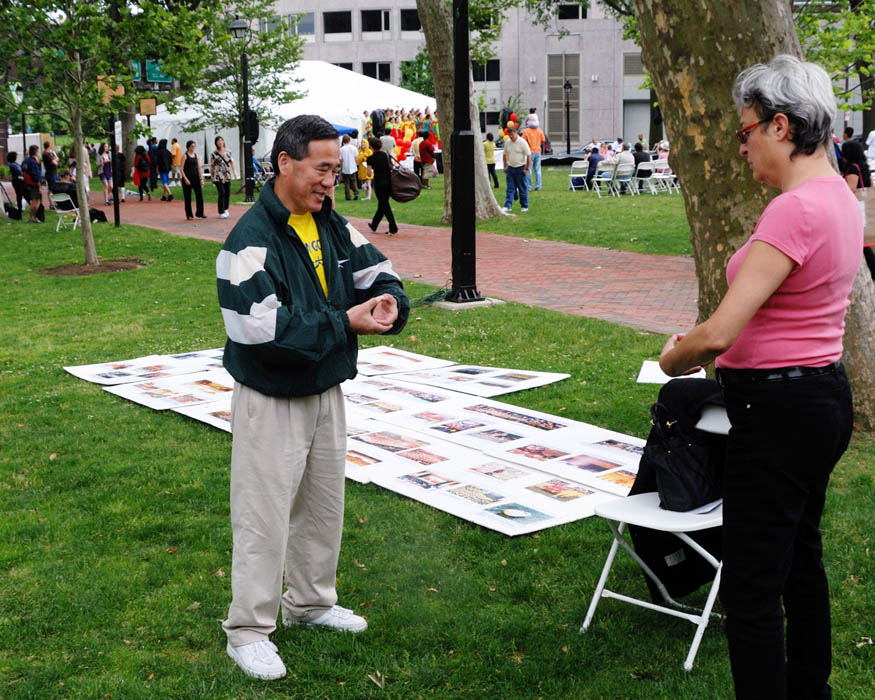 ![]() 费城第四届亚太裔传统月活动上的法轮功展位 |