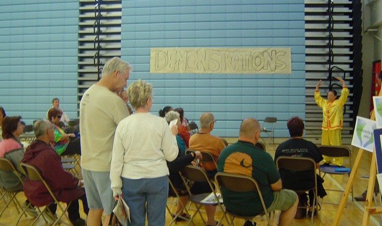 自二零零零年以来,法轮大法修炼者每届都接受邀请参加该博览会。与往届一样,法轮大法祛病健身的神奇功效和优美舒展的炼功动作吸引了大批参观者。许多人询问如何炼功,并有人在功法演示后就要求学功。家住路易斯市的卡罗.杰森(Carol Joson)女士兴奋地说:“我不能做剧烈的动作,这套功法动作缓慢,很适合我,又是免费,太好了!我回去就从网上下载炼功材料。”