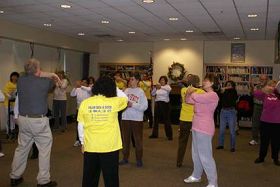 ![]() 都柏林市休闲活动中心里的法轮功教功班 |