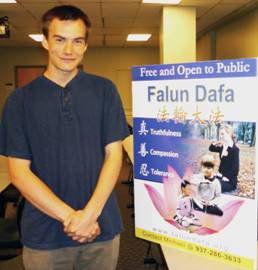 丹(Dan)二十岁,是怀特大学(Wright State University)的学生。过去的丹蓄着长长的头发,抽烟,喝酒,患有忧郁症,需要服药治疗,是一个使父母不能放心的孩子。一次去餐馆吃饭的机会,他从在餐馆工作的法轮功学员那里得到了法轮大法的信息,并走上了修炼的道路。从此人生有了新的奋斗目标。他头发剪短了,也不再抽烟喝酒,精神面貌焕然一新,面相都有了改变,充满了阳光(请看修炼前后两张照片的对比)。