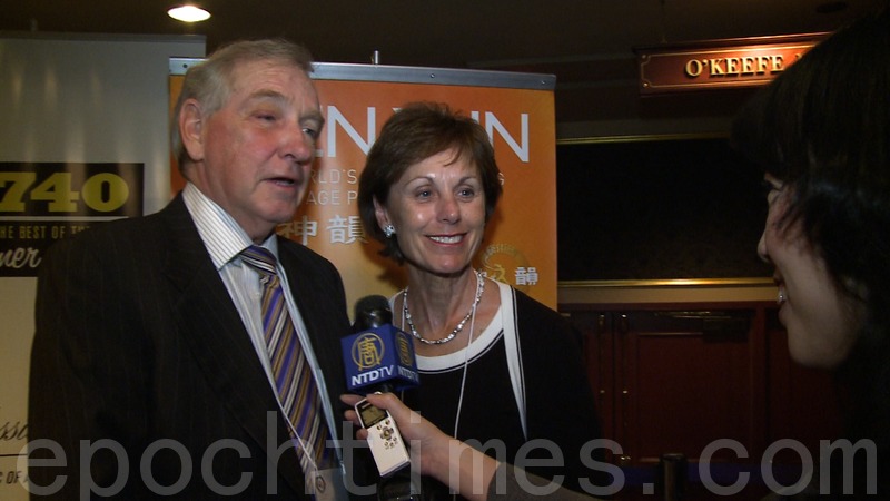 ![]() 安省皇家博物馆名誉主席海乐•沃尔克(Harriet Walker)和曾任安省厅长的先生高登•沃尔克一起观看了神韵晚会 |