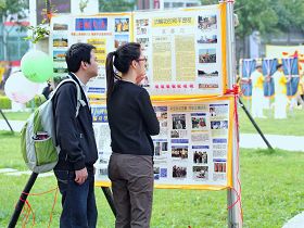 主办此次活动的桃竹苗辅导站负责人欧女士表示,今年是法轮功弘传世界第十八周年,也是第十一届世界法轮大法日。由于法轮功对人们的身心健康与陶冶有很大的助益,因此,来自桃竹苗各地的法轮功学员带着感恩与分享的心情,参加今天的活动,希望能让民众看到法轮功的美好。她表示,目前桃园区的炼功点将近九十个,欢迎桃园县民有机会能来了解法轮功。