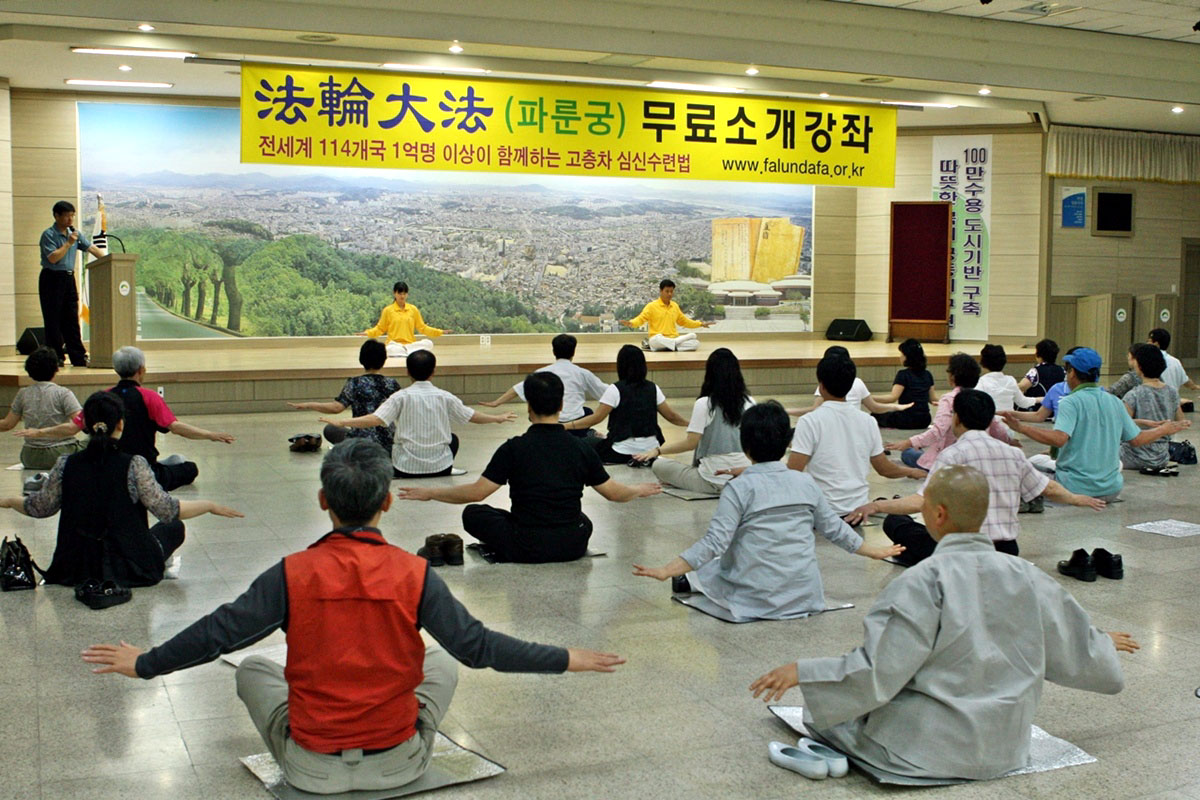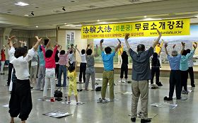 二零一零年五月二十九日,约八十余人参加了在大田广域市平松青少年修炼院(青少年活动中心)举办的法轮大法介绍班。介绍班在祥和的氛围里,经二个小时,以“介绍法轮功”、“法轮功对于增进身体健康所起的效果”、“学炼法轮功炼功动作”等几个部份有序地向与会者进行讲解。