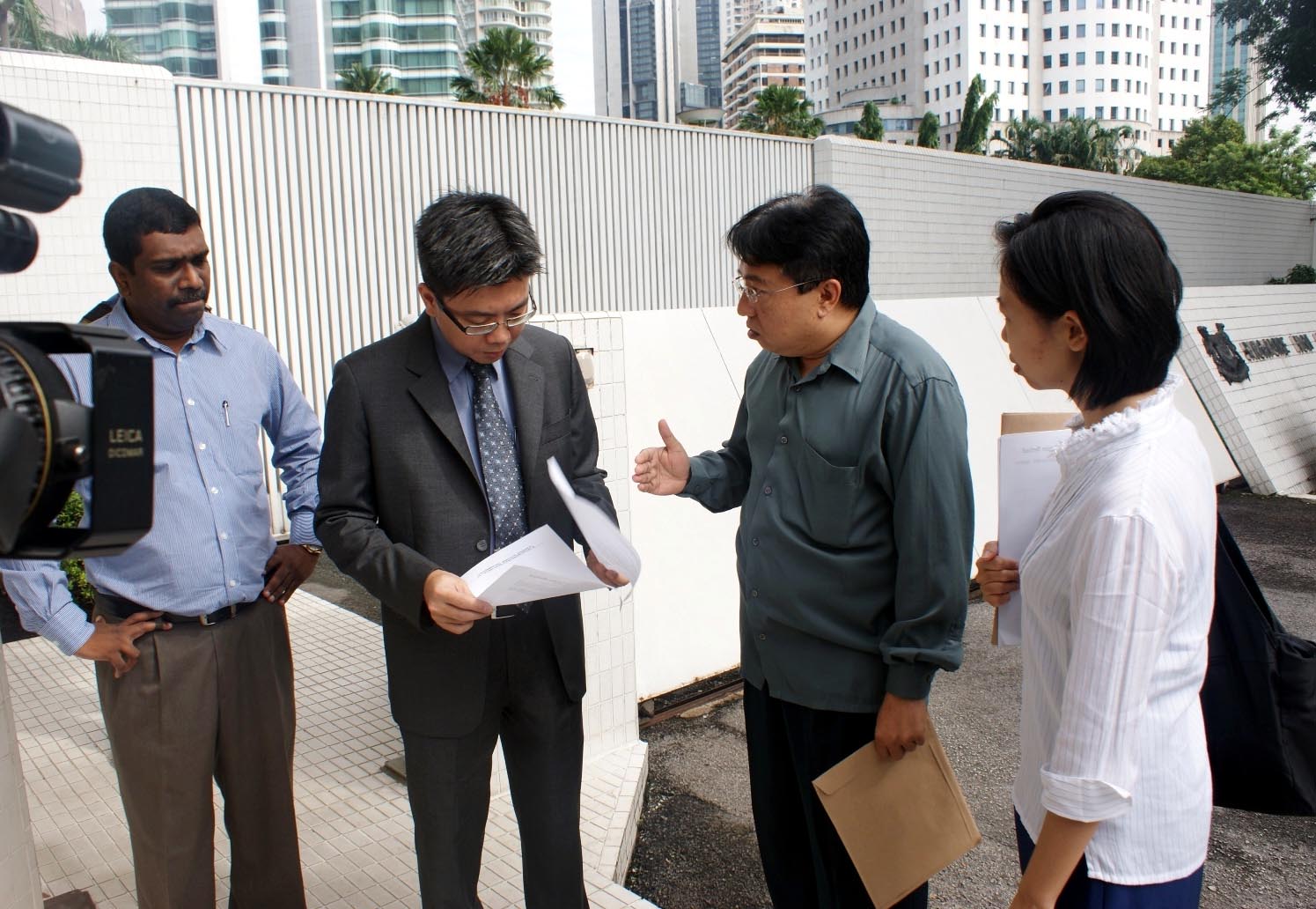 上午十时三十分,法轮功学员来到新加坡驻马来西亚领事馆,由法轮功发言人吴文强代表呈交呼吁信件,新加坡领事馆第一秘书谢有仁(Walter Chia)出来接见了法轮功学员。