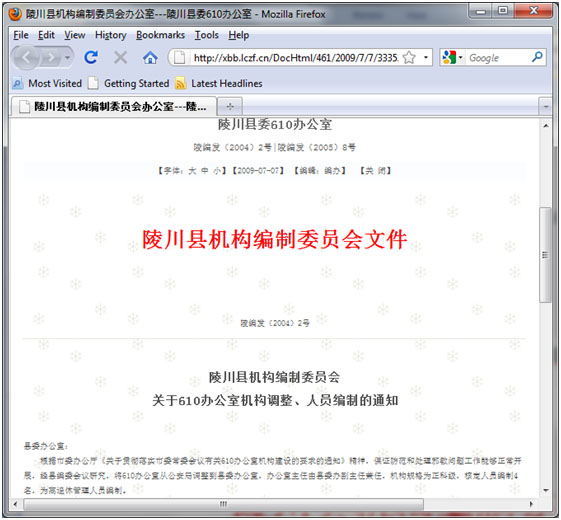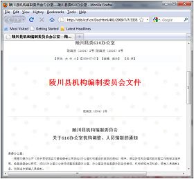 ![]() 山西省晋城市陵川县机构编制委员会文件(陵编发(2004)2号)(网络截图) |