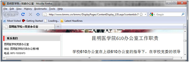 例二,2005年年底,吉林大学“610办公室”公开在校机关办公楼一楼办公导视图内出现。此举表明吉林大学“610”已由半公开到公开办公。吉林大学“610办公室”由最初的挂靠党委办公室到公开独立办公。此举在全国高校中也十分罕见。2005年年底,吉林大学法学院行政班子换届,新班子在成立之后,马上在2006年1月份公布了法学院“610”办人员组成名单,作为一个大学的法学院公开设立“610”办公室并对外公布,这在全国高校中也是首次。(吉林大学“610”公开挂牌办公)
