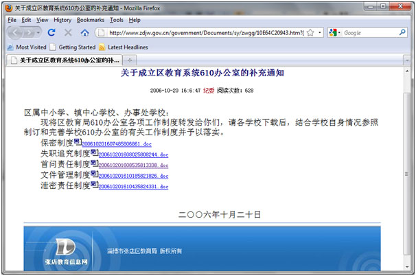 ![]() 源于2009年《中国中学生报》的一篇报导: 山东淄博市齐陵一中成立了“610办公室”(网络截图) |