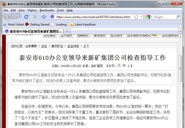 ![]() 山东省泰安的新矿集团公司内部有610(网络截图) |