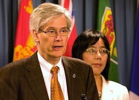 ![]() 国会法轮功之友主席、新民主党国会议员比尔•斯科赛(Bill Siksay)在新闻发布会上 |