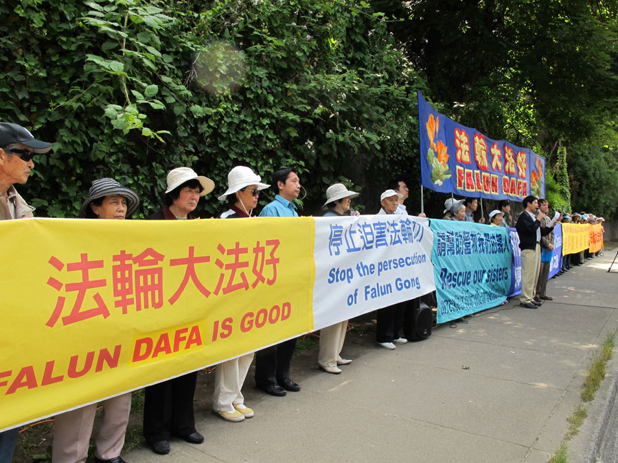 加拿大法轮大法学会在声明中说,在胡锦涛即将访问加拿大之际,我们再次请总理和国会议员借此机会明确并公开地向胡锦涛和中共政权呼吁,结束这场由国家支持的对法轮功学员的迫害,释放无数被关押的法轮功良心犯,包括十二名加拿大人的家庭成员和亲属,其中有刑期长达十二年的法轮功学员。仅在温哥华就有二十六位曾在中国遭受迫害的法轮功学员,其中三位法轮功学员是温哥华居民的亲属,目前在中国仍被关押着。